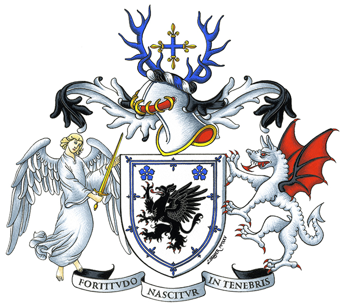 Addition aux armoiries de la famille Fairforth Rippon (France) des armes Coyle Davidson (Ecosse).